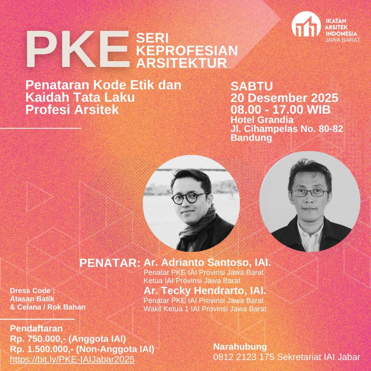 IAI Jawa Barat kembali menyelenggarakan Penataran Kode Etik dan Kaidah Tata Laku Profesi Arsitek (PKE) sebagai bagian dari Seri Keprofesian Arsitektur.