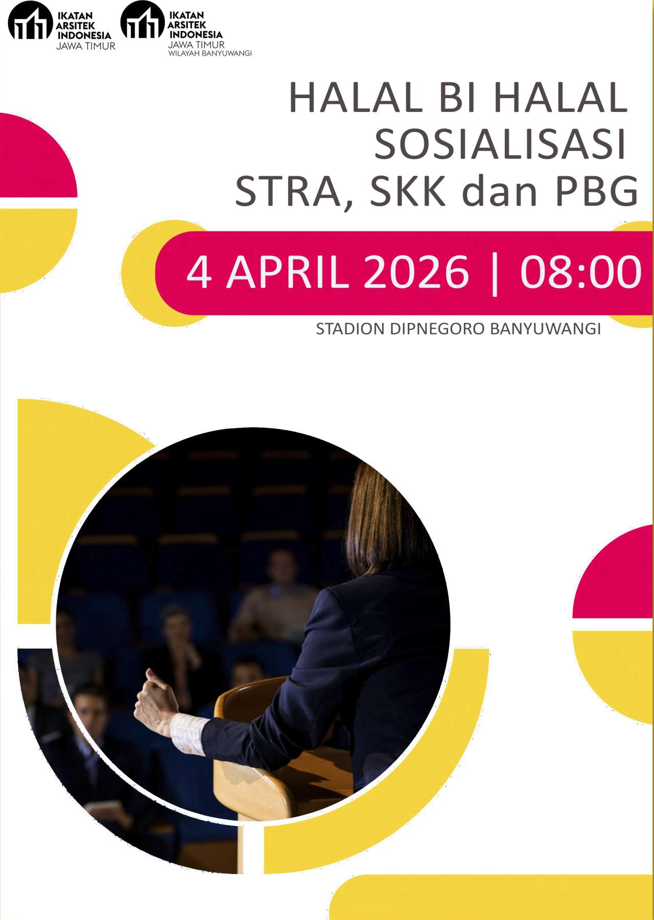 Dalam Rangka Menyambut Idul Fitri, kami pengurus IAI Jatim Komwil Banyuwangi ingin mengadakan acara silaturrahmi bertajuk halal bi halal untuk menyambung jalinan persaudaraan sesama sejawat arsitek di Banyuwangi, adpaun tujuan utama acara ini Adalah mengenalkan eksistensi komwil Banyuwangi kepada seluruh arsitek khususnya dan Masyarakat luas pada umumnya, serta mempersiapkan rentetan acara yang akan berlangsung pada sepanjang tahun 2026. Selain itu kami juga mengadakan sosialisasi terhadap sejawat arsitek yang belum menjadi anggota IAI dan berSTRA dan berSKK Arsitektur tentang bagaimana alur pengurusan sertifikasi tersebut.