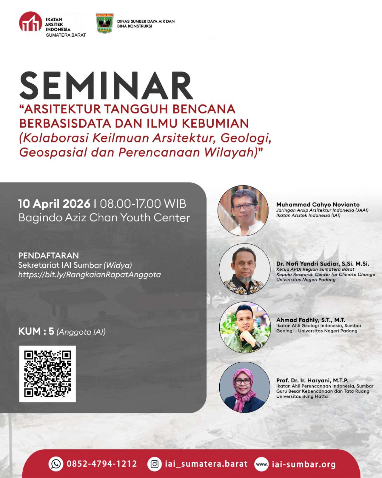 SEMINAR ARSITEKTUR TANGGUH BENCANA BERBASIS DATA DAN ILMU KEBUMIAN ( Kolaborasi Keilmuan Arsitek, Geologi, Geospasial, Dan Perencanaan Wilayah Dalam Mempersiapkan Masyarakat Tangguh Bencana )