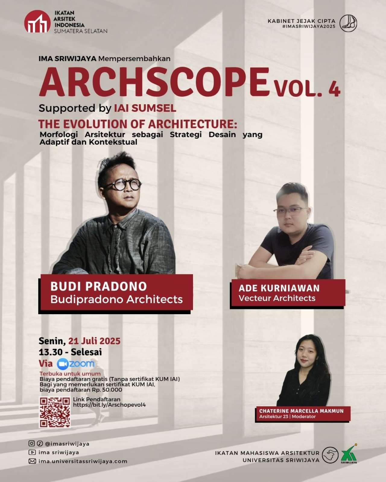 Archscope Vol. 4 bertujuan untuk mengkaji peran morfologi arsitektur sebagai pendekatan desain yang mampu merespons dinamika konteks secara adaptif dan berkelanjutan. Melalui tema ini, publikasi ini mendorong eksplorasi bentuk arsitektur yang tidak hanya estetis, tetapi juga relevan secara ekologis, sosial, dan kultural.