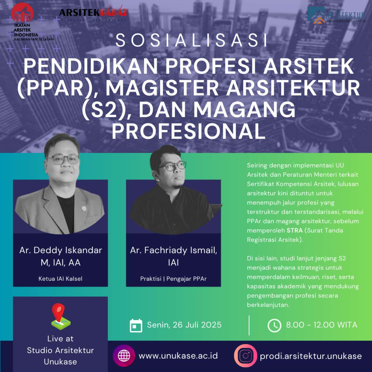 Sosialisasi Pendidikan Profesi Arsitek (PPAr), Program Studi Magister (S2) dan Magang