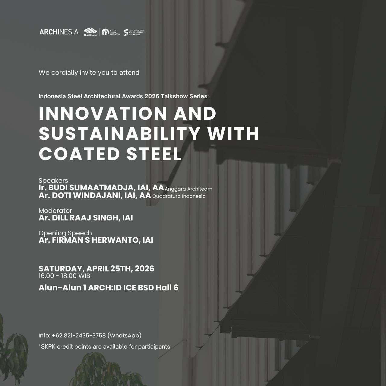 Indonesia Steel Architectural Awards 2026 – Talkshow Series menghadirkan diskusi langsung bersama arsitek praktisi terkemuka dalam sesi:
