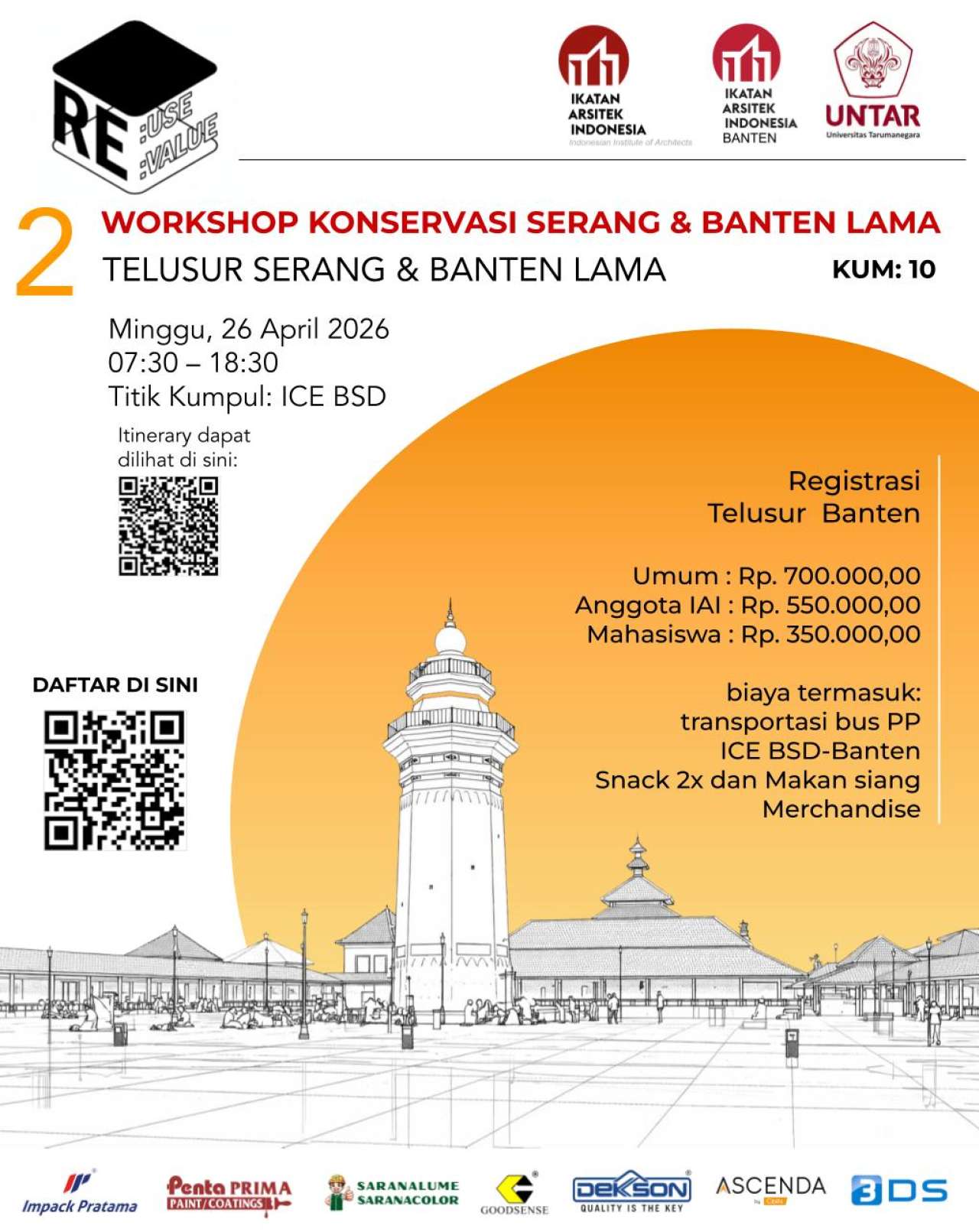 Mengunjungi kawasan Banten Lama, menelusuri jejak kejayaan Kesultanan Banten. Banten Lama sebagai kota kosmopolitan abad ke-17 meninggalkan objek cagar budaya yang menarik untuk dikunjungi berupa bangunan Masjid Agung Banten, Keraton Surosowan, Keraton Kaibon, Benteng Speelwijk, dan Vihara Avelokitesvara. Runtuhnya Banten Lama dan dibangunnya Kota Banten Baru yang kemudian lebih dikenal dengan nama Kota Serang menunjukkan perubahan pola arsitektur kota yang dipengaruhi oleh gaya arsitektur Eropa. Bangunan Gedung Negara, Gedung Juang, dan Ex Sekolah OSVIA merupakan beberapa peninggalan yang masih berdiri utuh dan mengalami proses adaptive reuse. Pemanfaatan kembali yang bukan hanya untuk fungsi baru tetapi juga untuk kegiatan budaya tahunan seperti kegiatan Seba dari masyarakat adat Baduy. Rangkaian kunjungan yang akan dilakukan dalam Telusur Satu Hari di Kota Serang dan Banten Lama